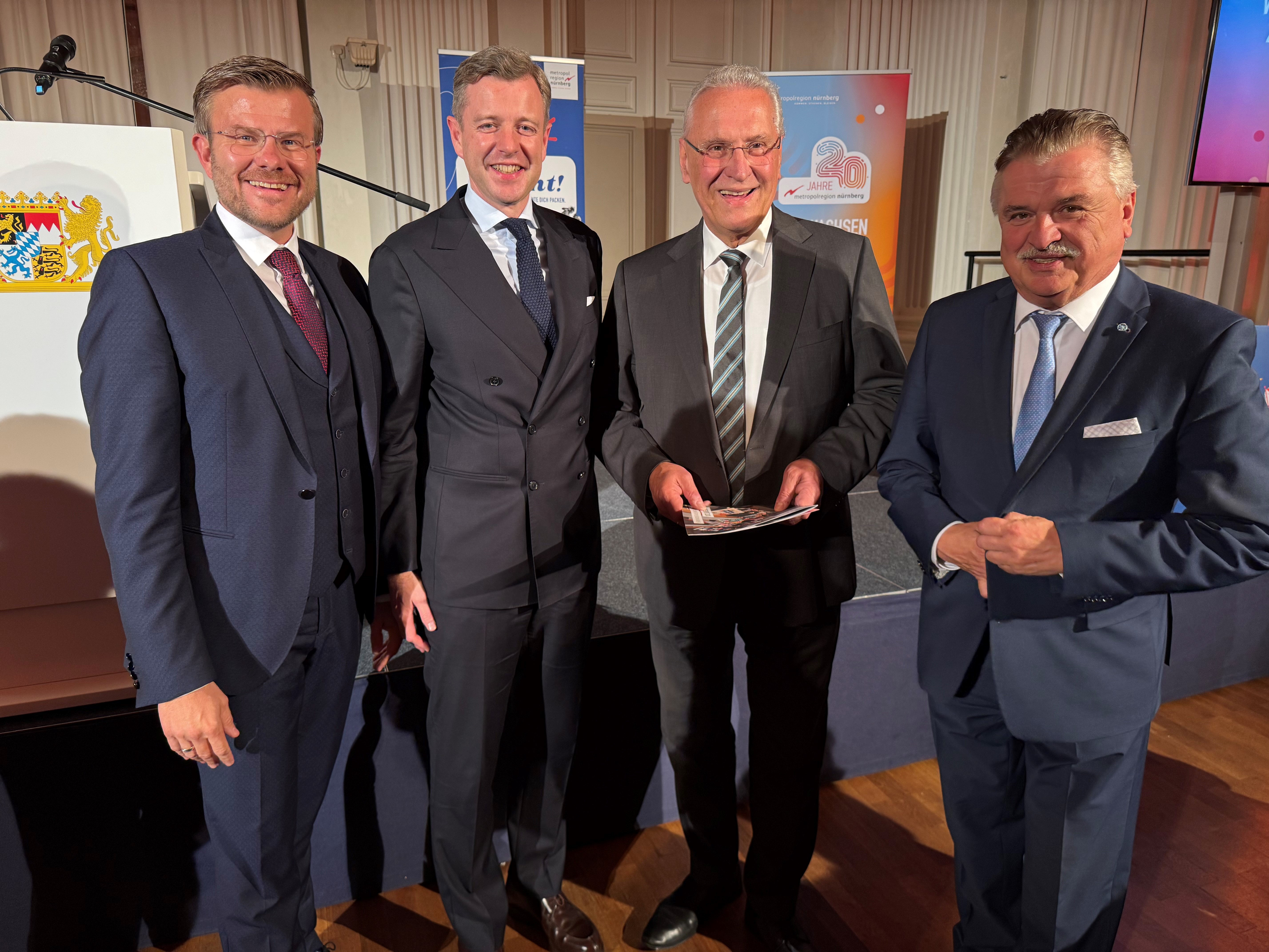 „Der Zusammenschluss blickt auf eine einmalige Erfolgsgeschichte zurück. Die Metropolregion Nürnberg ist und bleibt ein bedeutender Motor für die wirtschaftliche, soziale und kulturelle Entwicklung. Sie steht beispielhaft für die Leistungs- und Konkurrenzfähigkeit Bayerns - und das weit über unsere Landesgrenzen hinaus!", betonte Innenminister Joachim Herrmann beim Staatsempfang in der Münchner Residenz. Neben der hervorragenden wirtschaftlichen Entwicklung hob Minister Herrmann hervor, dass die Region ein hohes Maß an Lebensqualität biete, weil es gelungen ist, „die Städte und Gemeinden mit einer ausgezeichneten Infrastruktur, vielfältigen Freizeitangeboten und einer lebendigen Kulturszene attraktiv zu gestalten. Da ist etwas ganz Tolles im Gange!“