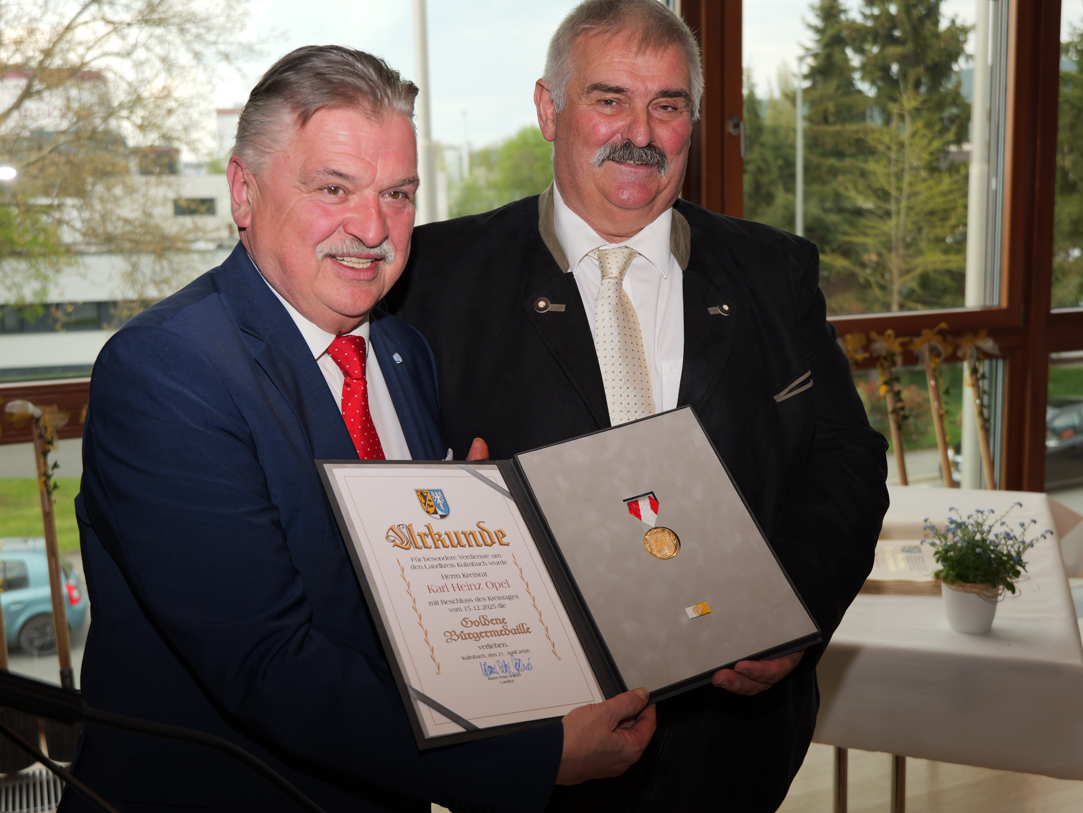 Der Landkreis Kulmbach hat mit der Goldenen Bürgermedaille eine der höchsten Auszeichnungen des Landkreises verliehen. Im Rahmen eines feierlichen Festakts mit rund 110 geladenen Gästen im Landratsamt Kulmbach sind am 21. April 2026 herausragende Repräsentanten der Region für ihr langjähriges Wirken geehrt worden. Mit dieser Auszeichnung würdigt der Landkreis außergewöhnliche Verdienste von Kreisrätinnen und Kreisräten, die sich über einen Zeitraum von 24 Jahren mit großem persönlichem Einsatz, Verantwortung und Verlässlichkeit für das Gemeinwohl engagiert haben.