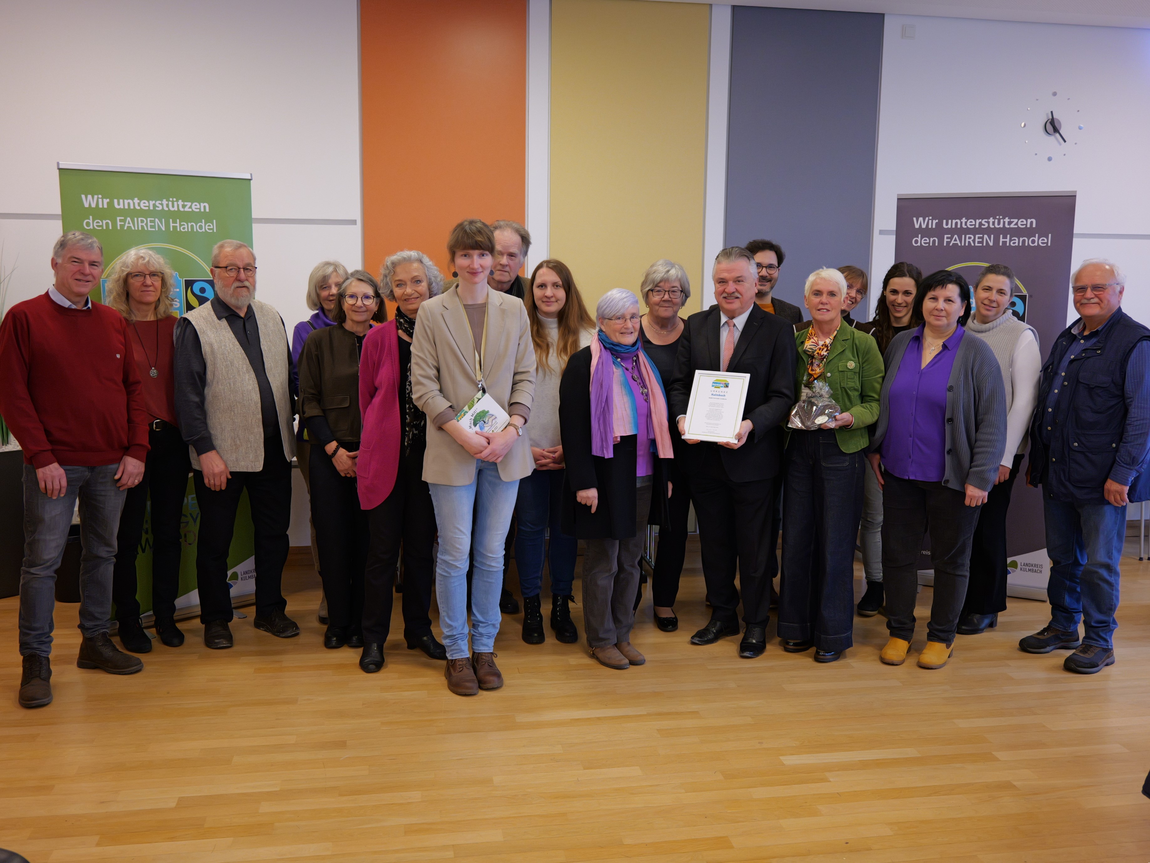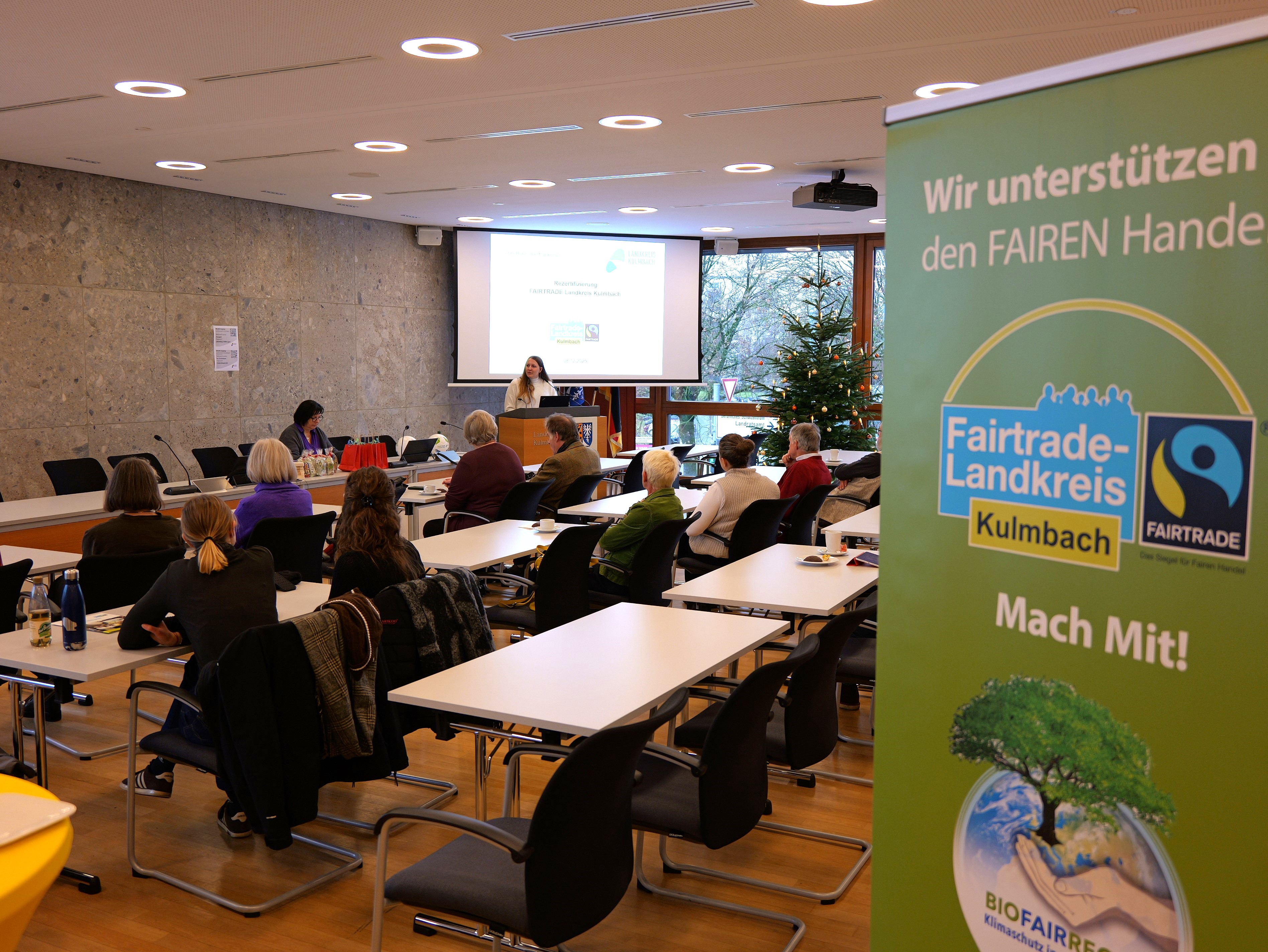 Anlässlich der aktuellen Titelerneuerung kamen kürzlich die Mitglieder der lokalen Fairtrade-Steuerungsgruppe sowie zahlreiche Kooperationspartner im großen Sitzungssaal des Landratsamts Kulmbach zusammen.