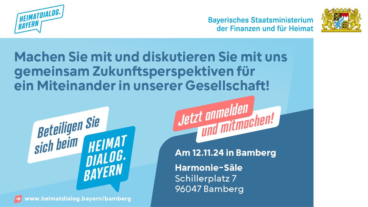 In Oberfranken findet ein regionaler Bürgerdialog am Dienstag, 12. November 2024 in Bamberg statt (Harmoniesäle, Schillerplatz 5).