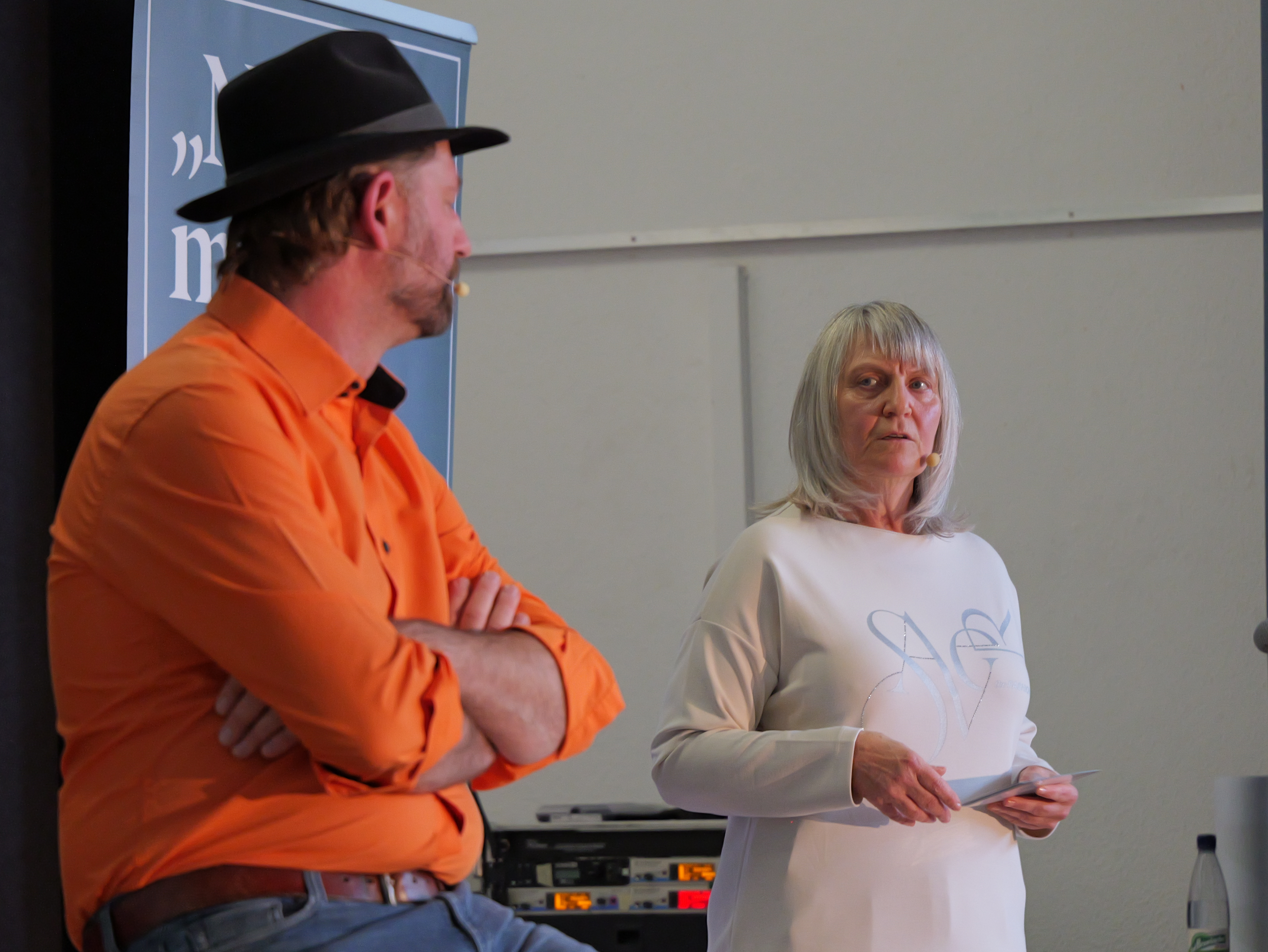 Kabarettist Tom Bauer aus Dingolfing gestaltete das Programm zusammen mit der kriminalpolizeilichen Fachberaterin bei der Kriminalpolizeiinspektion Hof, Anja Füßmann.