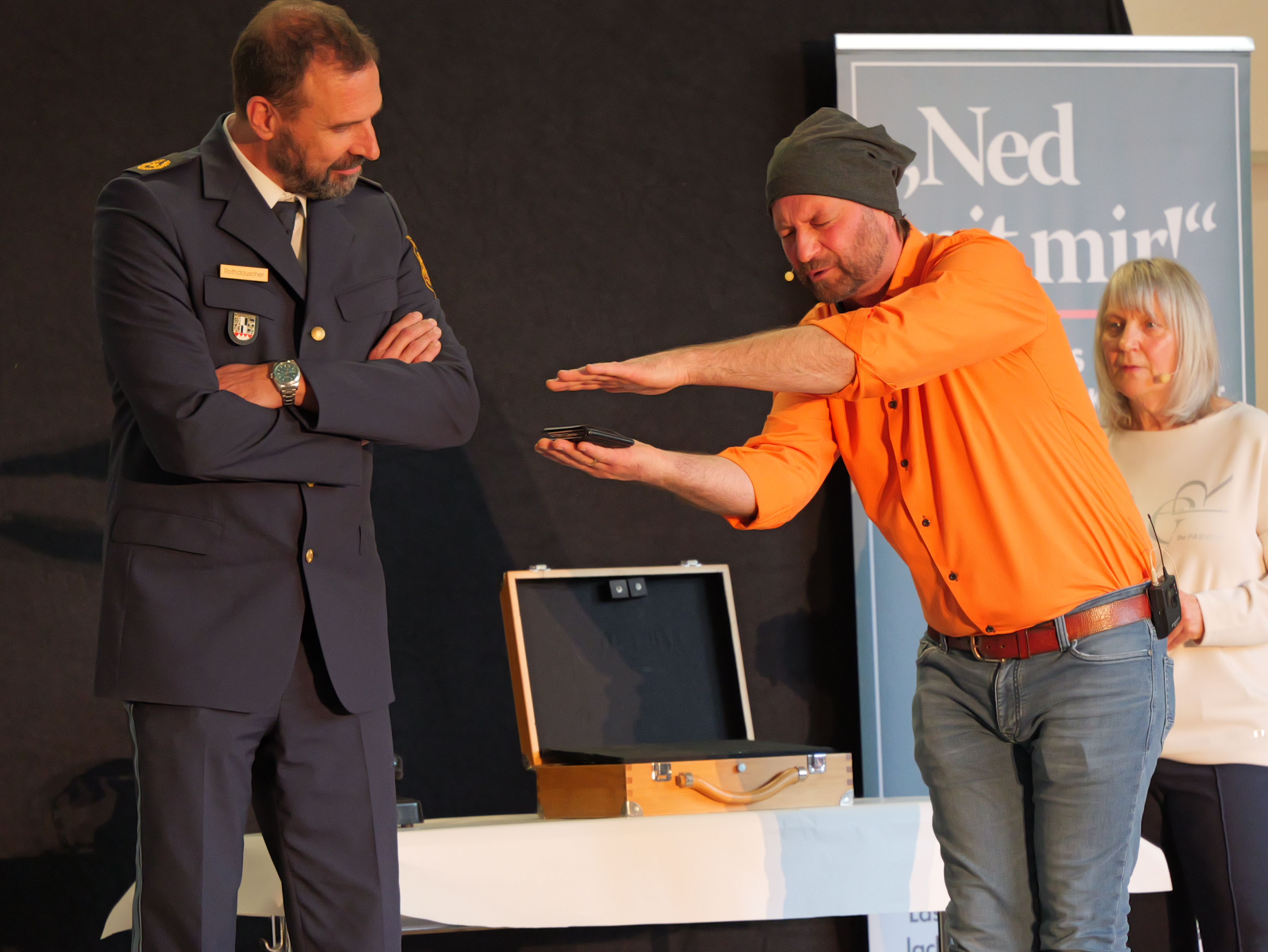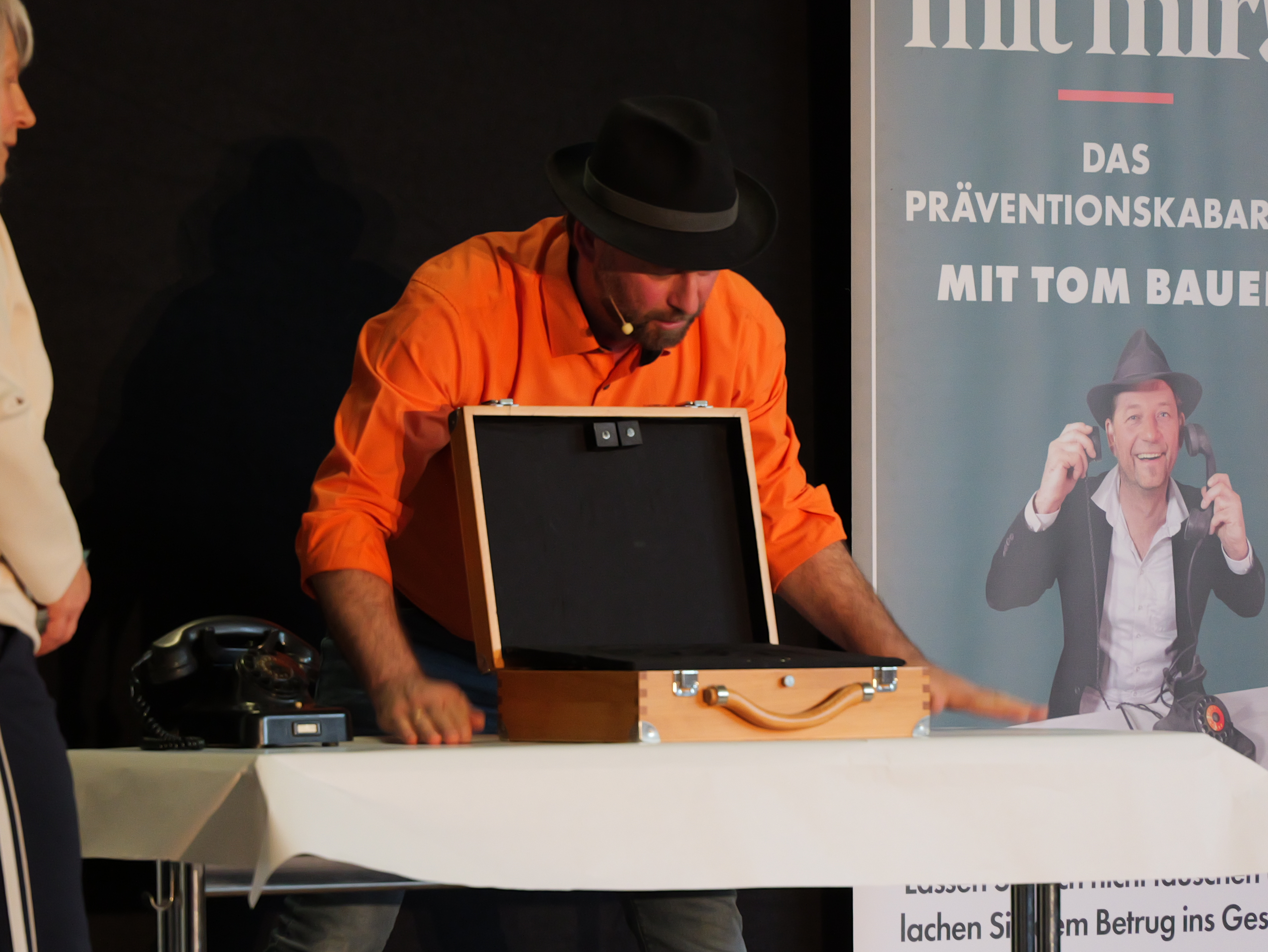 „Lassen Sie sich nicht täuschen und lachen Sie dem Betrug ins Gesicht!“ – Präventionsprogramm mit Kabarettist Tom Bauer ist voller Erfolg!