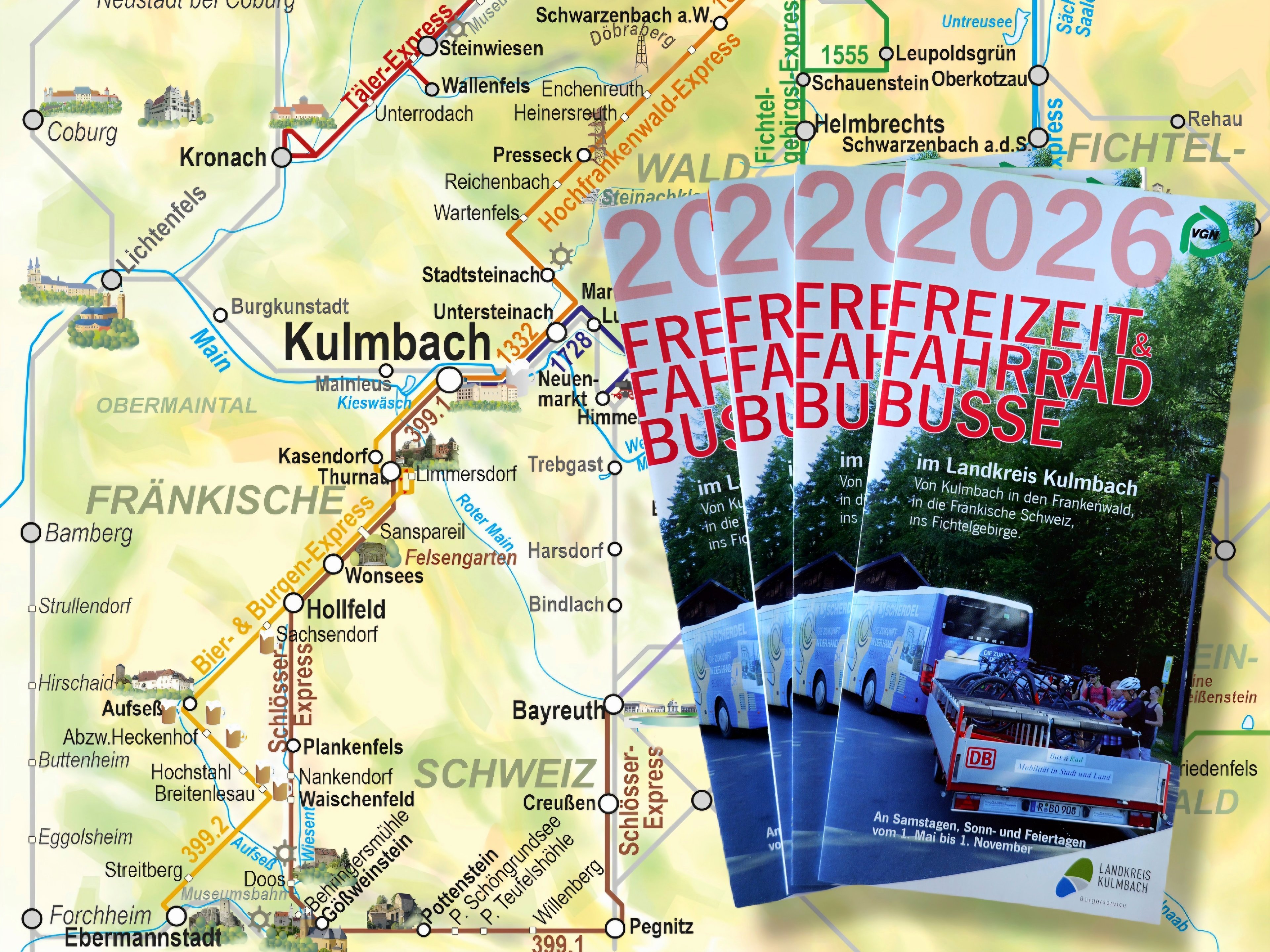 Pünktlich zum 1. Mai beginnt wieder die Saison der beliebten Freizeit- und Fahrradbusse rund um Kulmbach. Mit optimierten Fahrzeiten, neuen Anschlussmöglichkeiten und frischen Tourentipps macht ein neues Faltblatt Lust auf aktive Ausflüge in die Region.