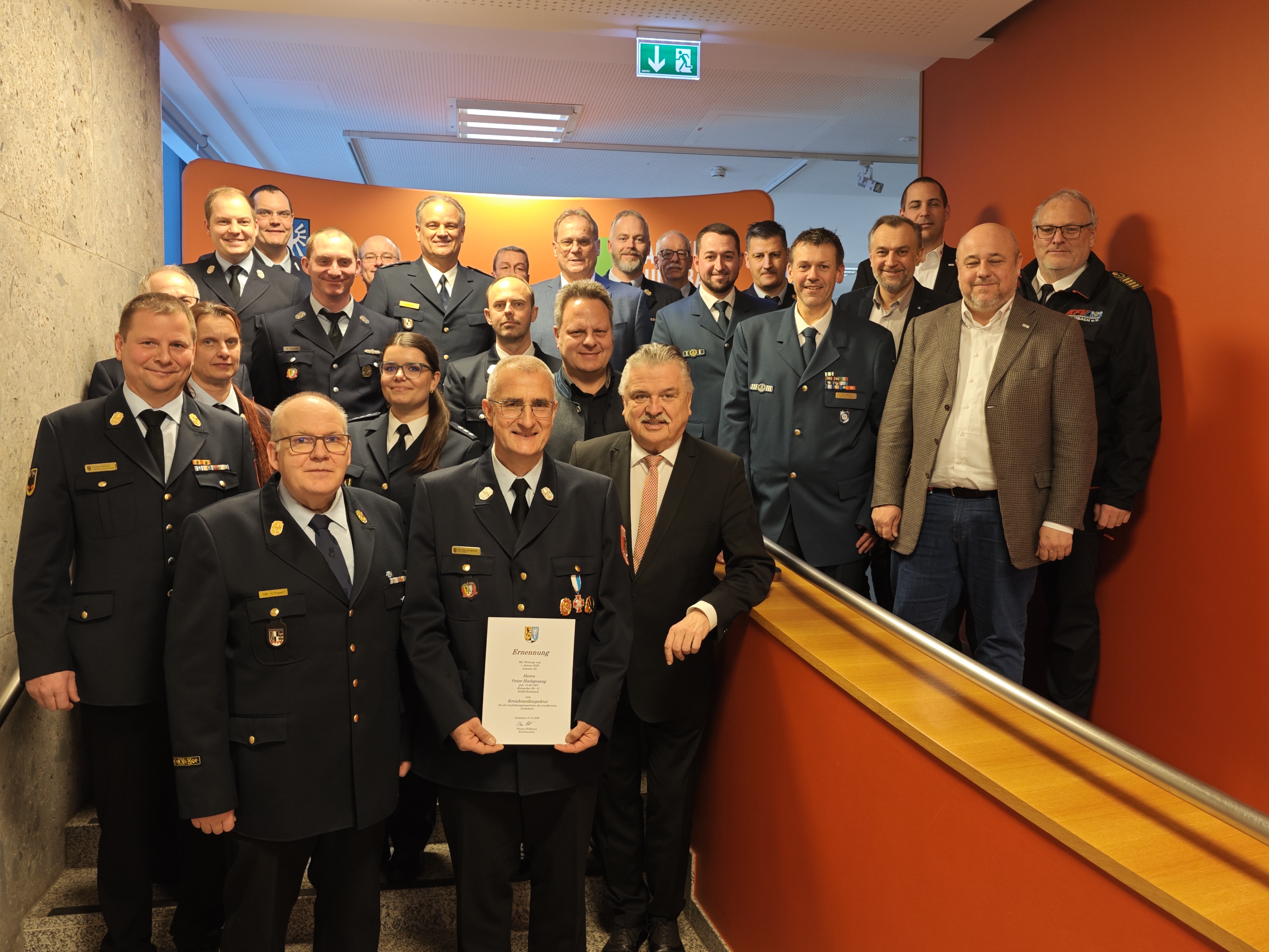 Im Kreis der gesamten Blaulichtfamilie wurde im Rahmen einer kleinen Feierstunde Peter Hochgesang offiziell zum Kreisbrandinspektor für den Bereich Ausbildung ernannt.