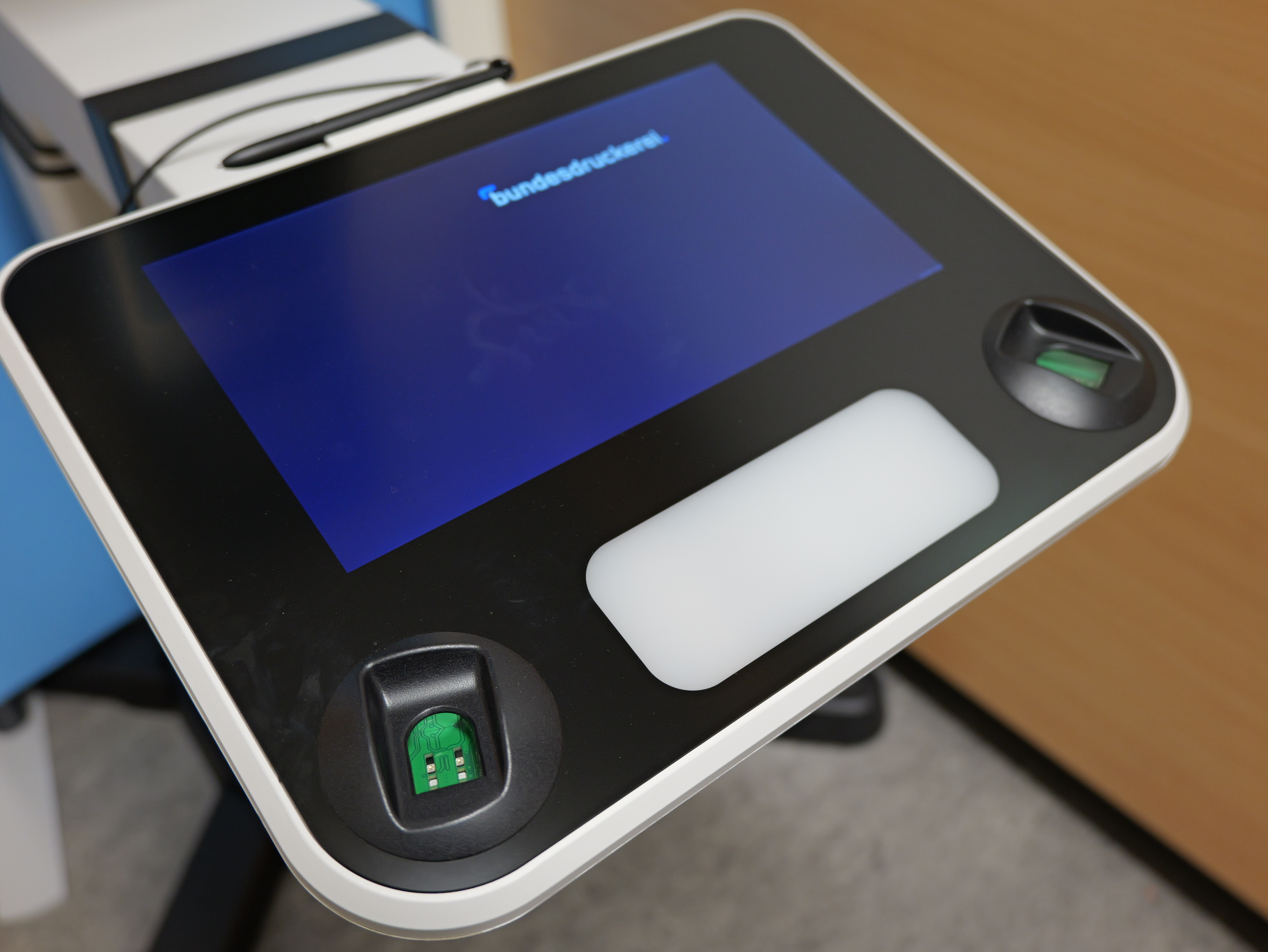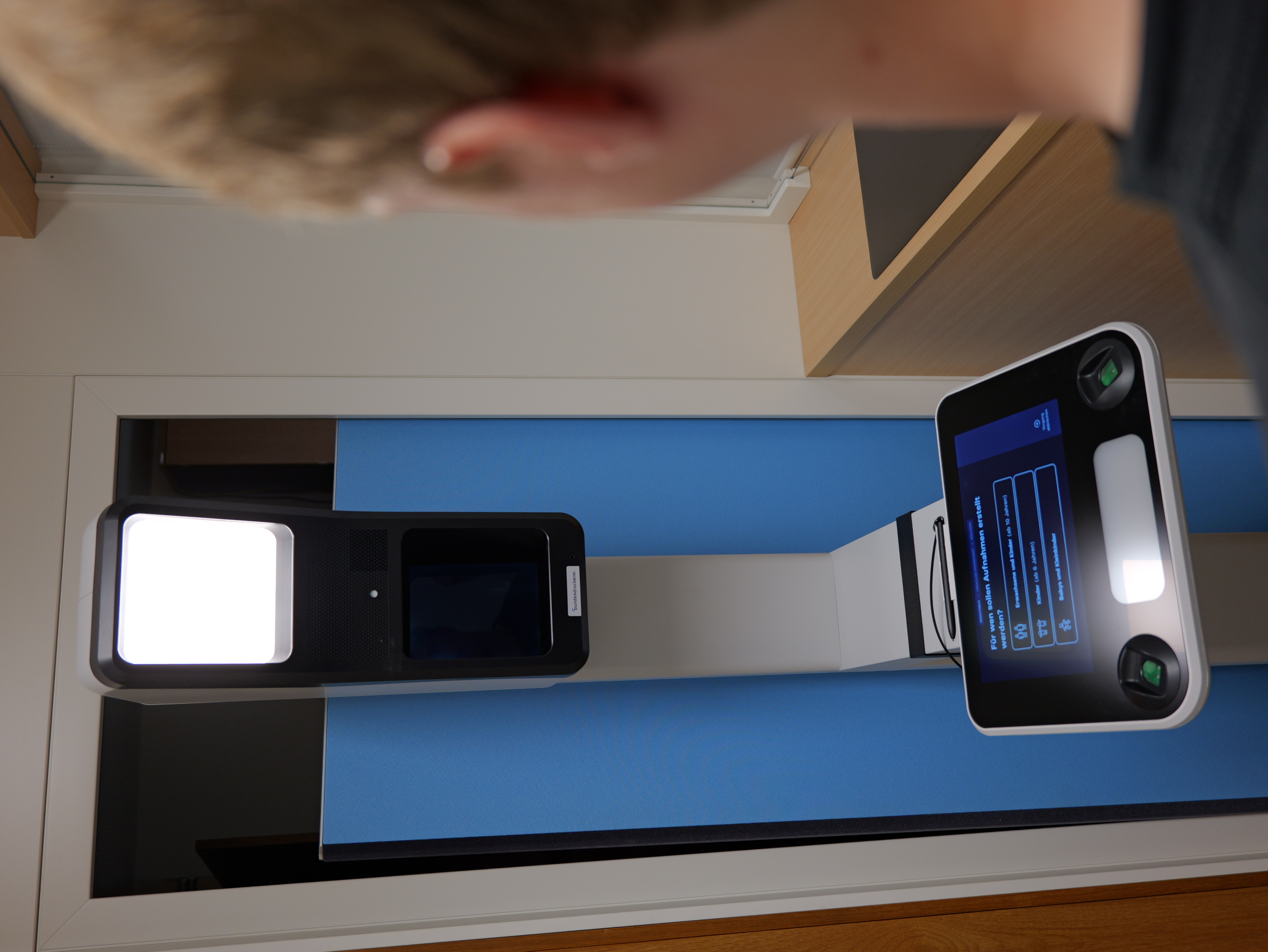 Die Geräte sind kompakt gebaut und lassen sich flexibel einsetzen – als Stand- oder Tischmodell. Sie passen sich automatisch an die Körpergröße der Nutzenden an und bieten einen neutralen Hintergrund. Über einen Touchscreen wird der Aufnahmeprozess in verschiedenen Sprachen Schritt für Schritt erklärt. Nach der Fotoaufnahme folgt optional die Erfassung der Fingerabdrücke und schließlich die digitale Unterschrift. Alle Daten werden verschlüsselt übertragen und sofort in die Fachverfahren der Behörde eingespielt.