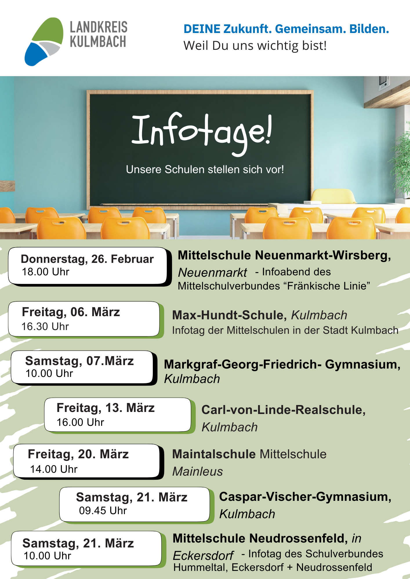 - Eine Übersicht zu allen unseren Schularten (Mittelschule, Realschule, Wirtschaftsschule und Gymnasium)